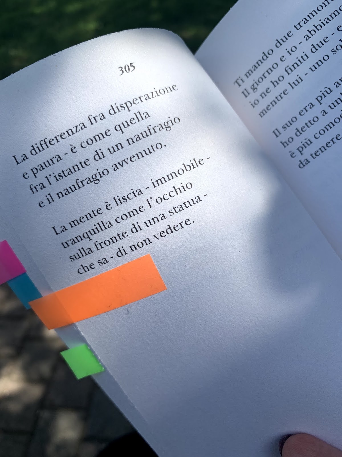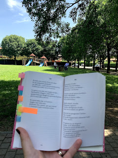 Lì, complice una brezza estiva, ho iniziato questo libro che poi ho dovuto interrompere fino al giorno seguente in cui, ascoltando le risate di mia figlia che giocava spensierata al parco, ho potuto proseguire la lettura fino a quell’ultima poesia che ha sancito il nuovo “arrivederci” tra me ed Emily.